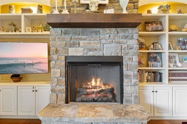 Perfect for entertaining, this home features a sleek wet bar, elegant Italian tile, and a seamless flow to the outdoor living area with a built-in grill and a second fireplace.